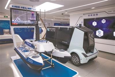 创新工场以“楼上楼下”创新创业综合体为特色。图为入驻团队研发的无人船艇和无人车设备。