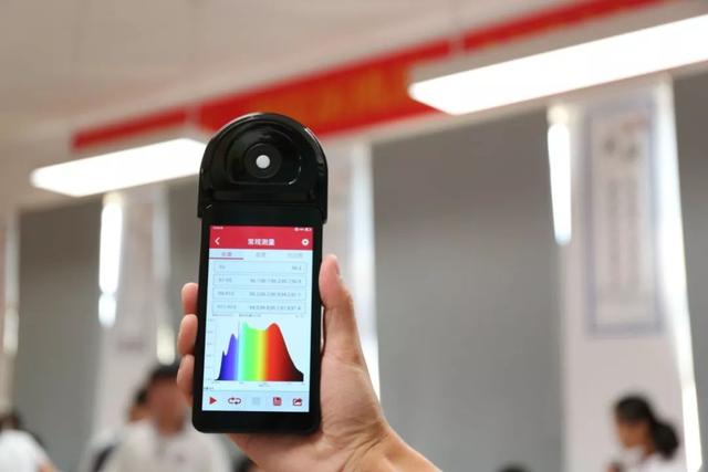 在华师一附中光谷分校,华引芯Eyepleasing全光谱LED光源光谱,非常接近太阳光光谱