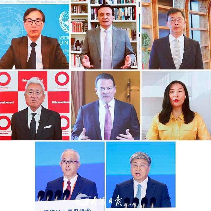 联合国贸发会议秘书长丽贝卡·格林斯潘,阿斯利康公司首席执行官苏博科,SK集团首席副会长崔再源,丸红株式会社会长、日本贸易会会长国分文也,路易达孚集团全球首席执行官高启,特斯拉公司全球副总裁陶琳,贝克休斯公司全球副总裁、中国区总裁曹阳,国家能源投资集团有限责任公司董事、总经理刘国跃致辞。