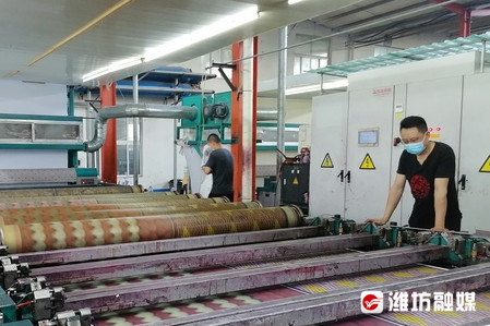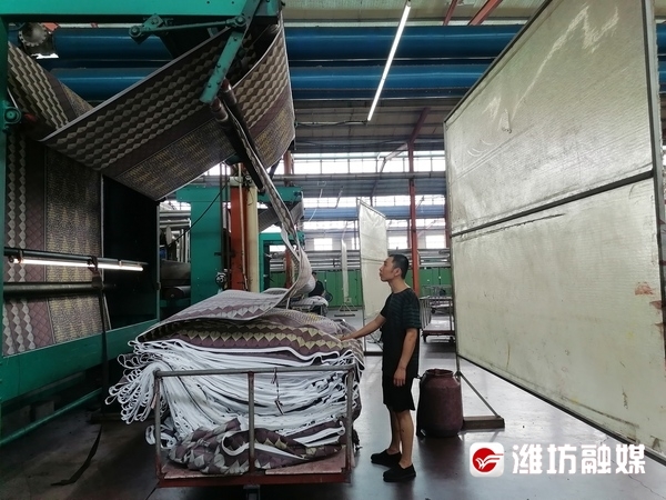 6月17日,在潍坊宏丰新材料有限公司生产车间,印花机等各式生产机械轰鸣作响。“公司以生产腊印布和服装布为主,目前年生产能力2.6亿米。今年以来,我们克服疫情影响,科学调度,精心组织,企业保持良好生产经营状态。”公司总经理黄祖君告诉记者。