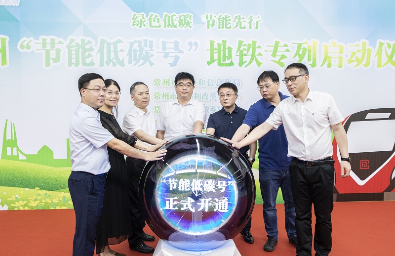 专列启动仪式在常州市地铁同济桥站内举行,市工信局严德群局长宣布专列开通,市发改委、住建局、事管局以及国网常州供电公司、常州地铁公司相关负责人共同开启启动球并乘坐专列体验本次宣传成果。