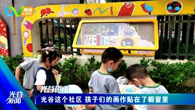 光谷这个社区,孩子们的画作贴在了橱窗里