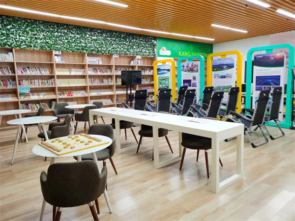 直里社区农家书屋坐落在直溪镇工业园邻里中心,这里儿童读物、专业技术书籍、书法绘画作品、党史党建学习读本等书籍应有尽有,精准对接园区职工和社区居民不同人群中多样化、个性化的阅读需求,成为了他们排解生活压力,放松心灵的地方。