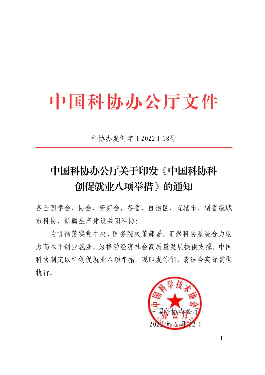 为贯彻落实党中央、国务院决策部署,积极发挥科技创新在培育发展新动能、打造就业新引擎中的源头作用,有效应对疫情持续和经济发展压力对我国就业形势带来的风险挑战,推动实现更加充分更高质量的就业,中国科协办公厅印发《中国科协科创促就业八项举措》。