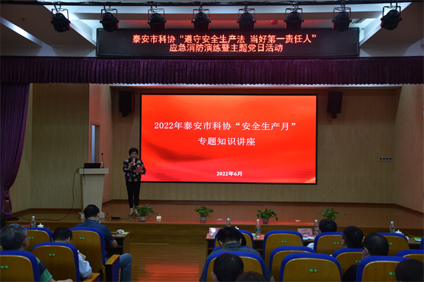 今年6月是第21个全国“安全生产月”,为进一步提高科协党员干部群众的消防安全防范责任意识和应急处置能力,学习并遵守安全生产法,当好第一责任人,提高应急消防处置能力,学习掌握各种消防设施的使用方法。6月21日,市科协组织机关及直属单位全体干部职工,开展了以“遵守安全生产法 当好第一责任人”主题党日活动。