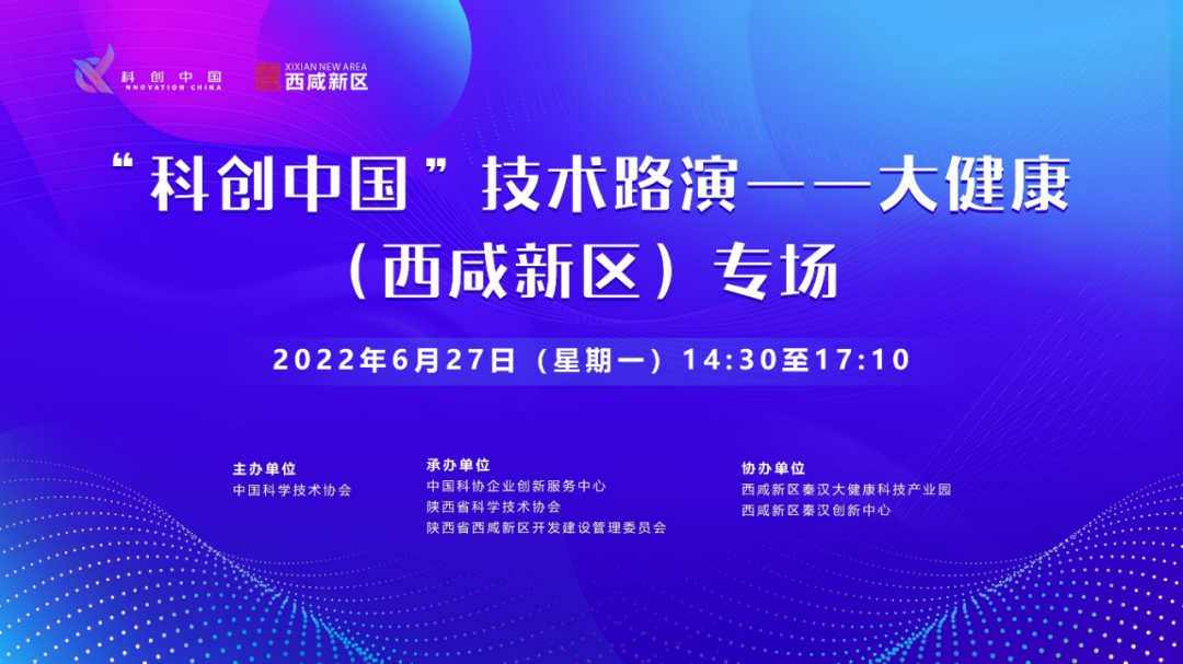 6月27日,由中国科学技术协会主办,中国科协企业创新服务中心、陕西省科学技术协会、陕西省西咸新区开发建设管理委员会共同承办的2022“科创中国”技术路演——大健康(西咸新区)专场,以线上线下相结合形式成功举行。活动通过“科创中国”、科技工作者之家、企业创新最前沿、中国日报网、环球网、中国经济网、华商网等平台宣传推介。