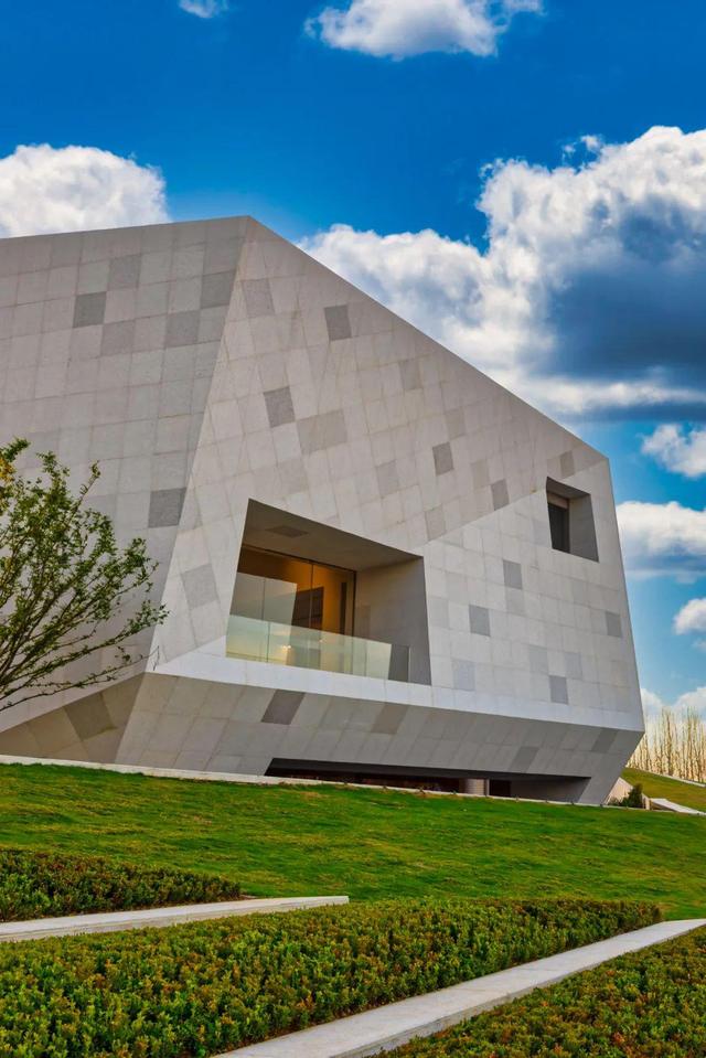 该馆以一颗自然的白石头为灵感,设计师希望“它就像是一直扎根在这里,从土里长出来一样。”