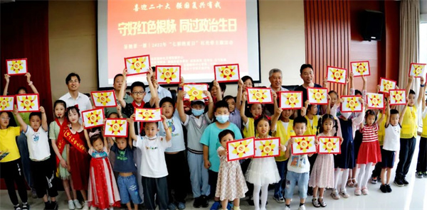 喜迎二十大,筑梦向未来。“七一”到来之际,由金坛区新时代文明实践中心牵头指导,金坛区文明办、区民政局、区科协、区气象局主办,西城街道河滨社区党总支、融媒体中心新闻二支部、小红妈儿童“关爱之家”、区红十字养老照护队承办暑期第一课│“守好红色根脉,同过政治生日”--“七彩的夏日”红丝带主题活动。