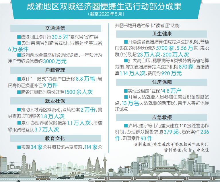 成渝地区双城经济圈便捷生活行动部分成果(截至2022年5月)