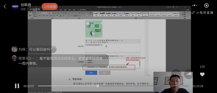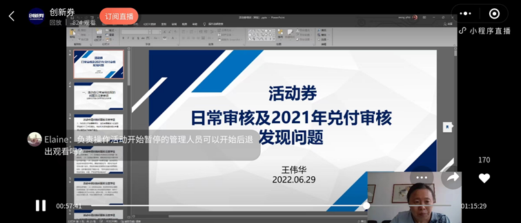 会上,市科技情报院相关人员对活动券相关政策进行了解读,对活动券工作流程进行了说明,对日常审核中的常见问题及2021年兑付审核中发现的问题进行了介绍,对下一步活动券开展中应重点注意的事项尤其是活动申请的提交和视频的直播上传要求作了特别说明;山东牵翼网络科技有限公司技术人员介绍了活动券管理平台及直播技术的使用。培训中针对服务机构提出的问题,现场培训人员作了详细解答,解决了困扰服务机构的疑问。