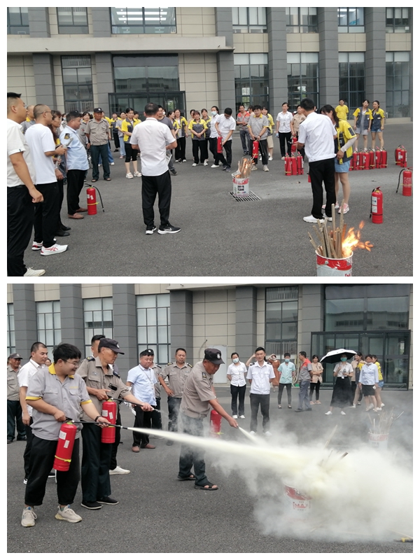 随后,全体参训人员来到荣事达园区进行消防器械实战演练,旨在通过模拟火情发生时的消防安全应急操作流程,提高大家的实际操作能力。现场,李教官详细讲解了灭火器的使用方法与注意事项,大家在认真学习后,依次使用灭火器对模拟“着火部位”进行灭火演练。