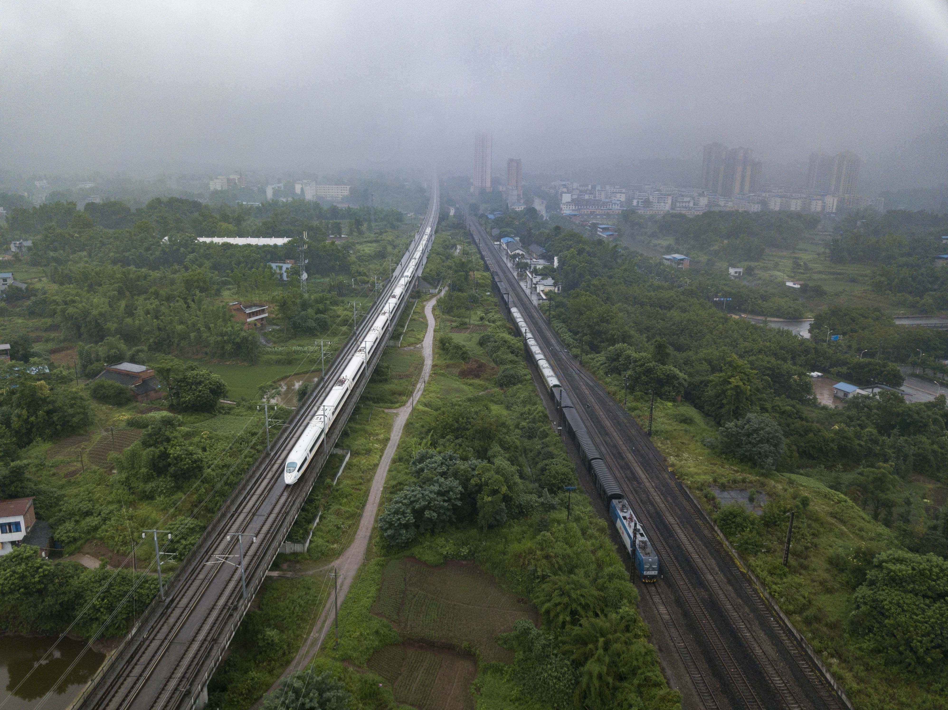 2019年6月11日,成渝铁路荣昌区峰高铺站,一列成渝高铁从普通列车旁驶过。记者 谢智强 摄/视觉重庆