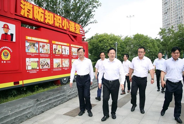 陈金虎来到凤凰新城安全城市消防主题公园,园区在“凤凰浜体育公园”的基础上进行改造升级,是常州市第一座安全城市、应急消防科普教育基地,涵盖了安全文化、安全教育、安全体验三个功能区域,具备普及知识、亲身体验、模拟演示、文化展示等功能。陈金虎走进微型消防站、消防体验馆等,详细询问园区开展安全教育培训等情况。他指出,公共安全文化是安全发展的“灵魂”,只有让“生命至上、安全第一”的公共安全观真正成为每一个常州人刻入骨髓、浸入血液的文化修养、文化自觉,公共安全才会有持久保障。要因地制宜,结合口袋公园建设,打造升级安全宣传基地,实现功能叠加,融入交通安全、消防安全、校园安全、居家安全、自然灾害防灾避险等元素于一体,寓教于乐,增强体验效果,培养安全意识,提升安全技能。