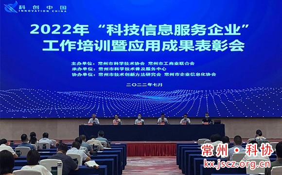 2022年7月5日上午,由常州市科学技术协会和常州市工商业联合会主办、常州市科学技术普及服务中心承办、常州市技术创新方法研究会和常州市企业信息化协会协办的2022年“科技信息服务企业” 工作培训暨应用成果表彰会成功召开。市科协副主席王广宝、市工商联副主席眭荣辉、市科协学会部部长张淑波、市工商联经济处处长陈明华、团市委统战部部长徐彬出席会议,会议由市科普服务中心主任束为民主持。