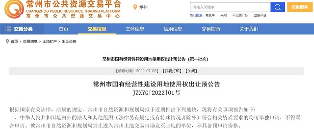 国有经营性建设用地使用权出让 常州市首次实施“预公告”制度