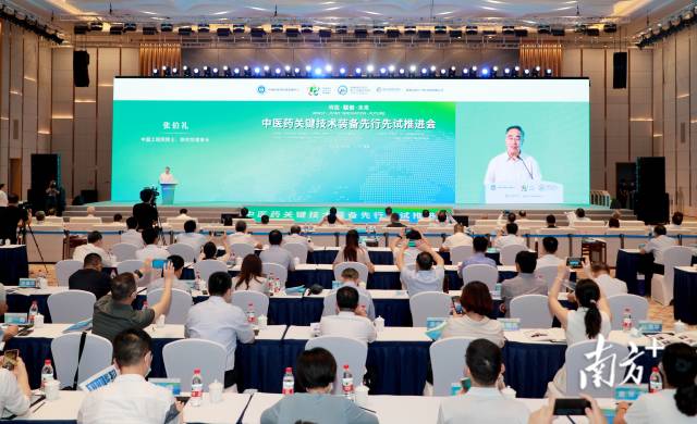7月10日上午,中医药关键技术装备先行先试推进会在广州市黄埔区、广州高新区举行。中国工程院院士张伯礼,中国工程院院士、国医大师王琦,中国科学院院士徐宗本,禤国维、梅国强、周岱翰、廖品正、林毅等国医大师,以及国内50多家高校、医院、科研院所、生物医药企业代表出席活动,共同探索破解中医装备关键核心技术、构建中医药现代化全过程创新生态的“黄埔路径”。