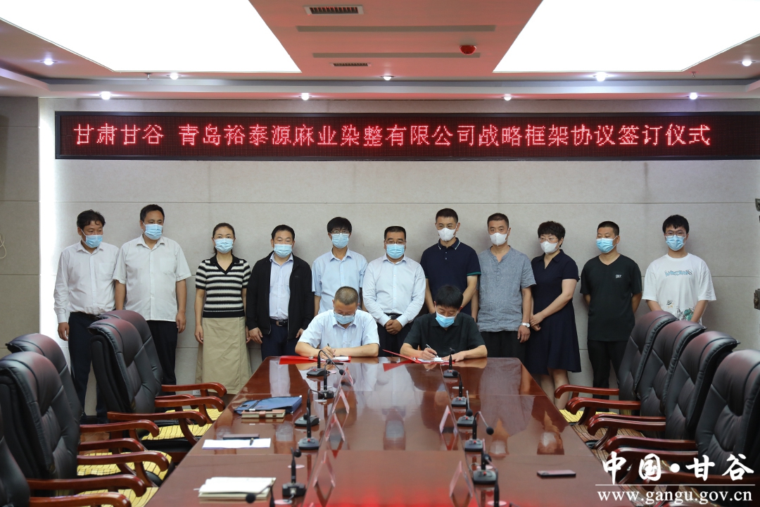 甘谷县与青岛裕泰源麻业染整有限公司签订战略框架协议