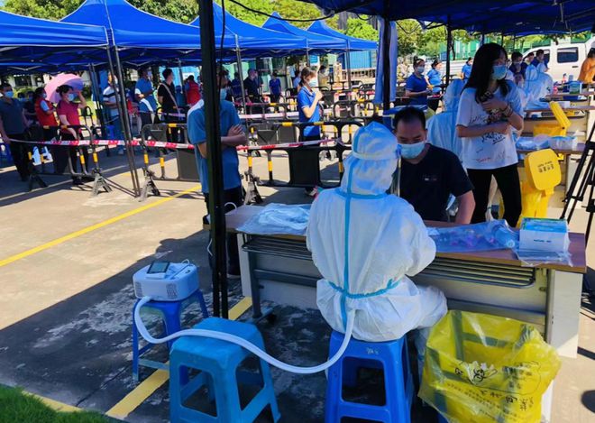 昨天,中山气温高达35℃,一些在户外做核酸检测的“大白”迎来了降温神器——恒温服。穿上这套衣服,无论外面多热,10分钟之内就能降到人体舒适的温度。