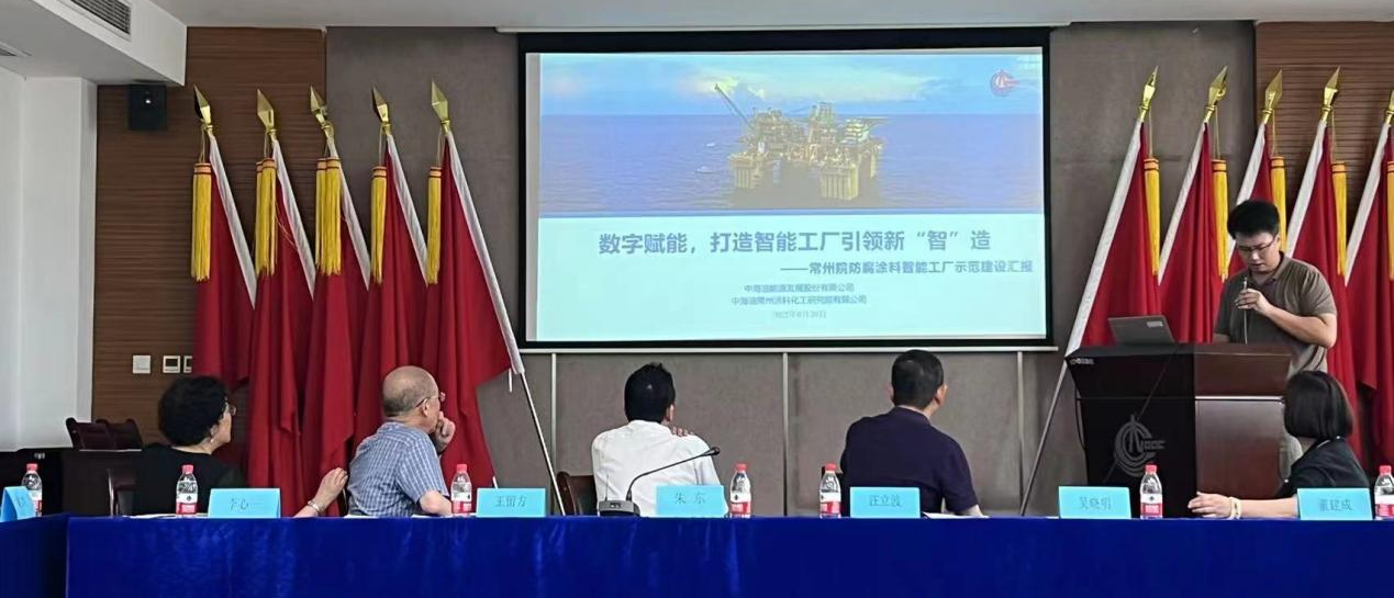 会上,中海油常州环保涂料有限公司潘维岳副总经理向大家作“数字赋能,打造智能工厂引领新‘智’造”主题分享,并以视频+PPT的形式详细介绍了当前公司设备智能化转型升级后带领企业实现质变的巨大成果。