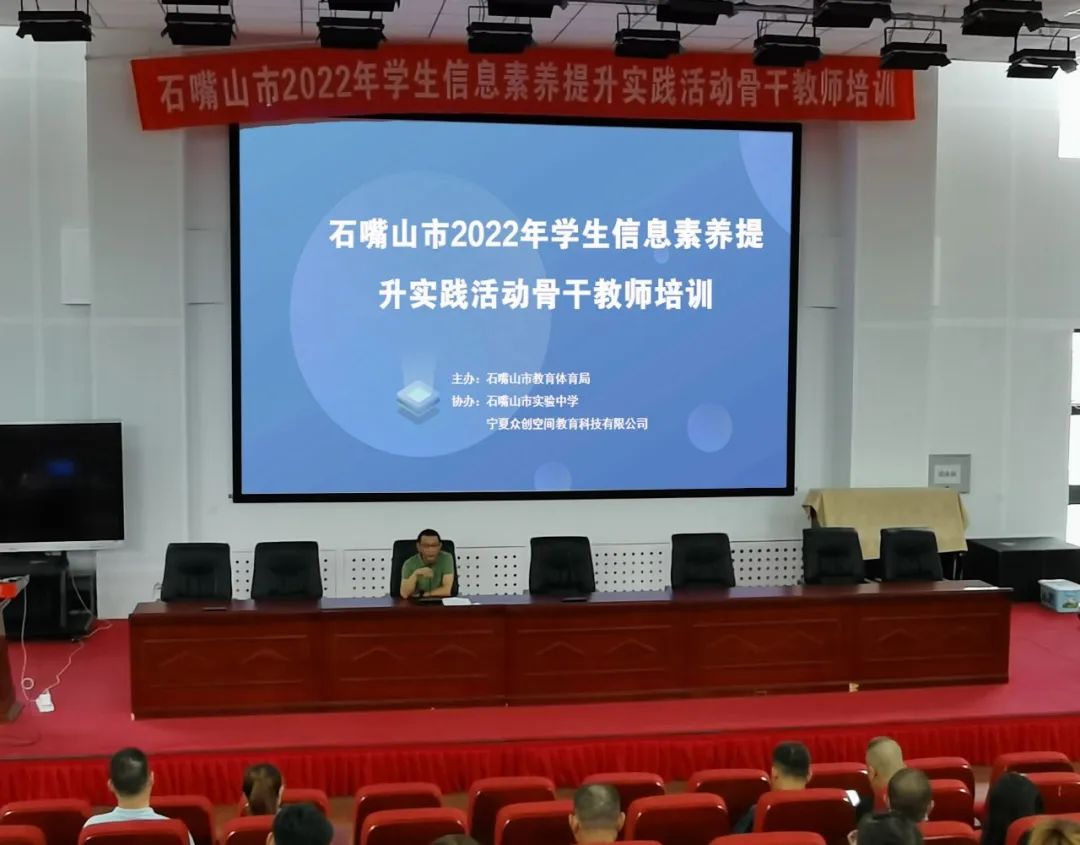 2022年7月19日,由石嘴山市教育体育局主办,宁夏众创空间教育科技有限公司协办的石嘴山市2022年学生信息素养提升实践活动骨干教师培训班在石嘴山市实验中学开班。