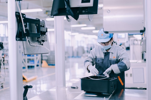 电路板组件是充电桩的核心部件,今年5月中旬,万帮数字能源新建的十万级无尘净化车间投入使用。通过数据交换,模块更新,万帮拥有10多条全柔性智能化流水线,最快5分钟就能切换生产各种类型电路板,实现产销协同柔性制造。