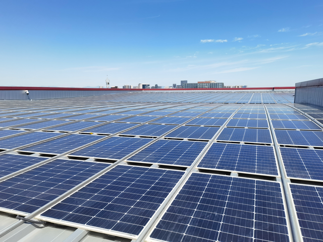 “我脚下踩的正是建筑光伏一体化产品,不光可以发电,还能够起到保温、隔热、防风、防渗漏等作用。”该集团工作人员踩着正在运行中的太阳能光伏板,向贝壳财经记者表示。