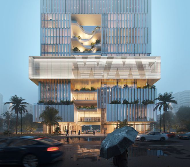 项目总建筑面积约4.2万㎡,其中地上建筑2.9万㎡,地下建筑面积1.3万㎡。