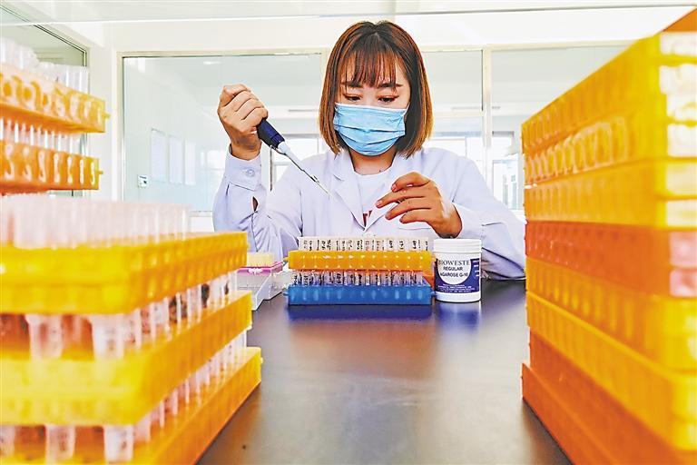 宁夏泰金种业股份有限公司分子育种实验室工作人员进行育种工作。