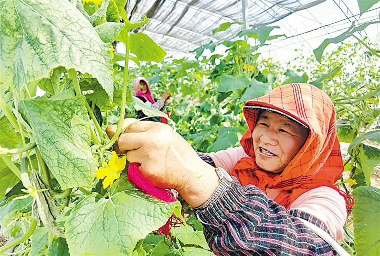 在黄渠桥镇五星村蔬菜制种园区,每一个瓜菜品种都有“身份证”,从西吉县搬迁至此的移民王勤勤和村民们在地里忙得热火朝天。“一年四季在家门口都有活干,村里的产业兴旺,我们的日子也越来越红火。”王勤勤说。