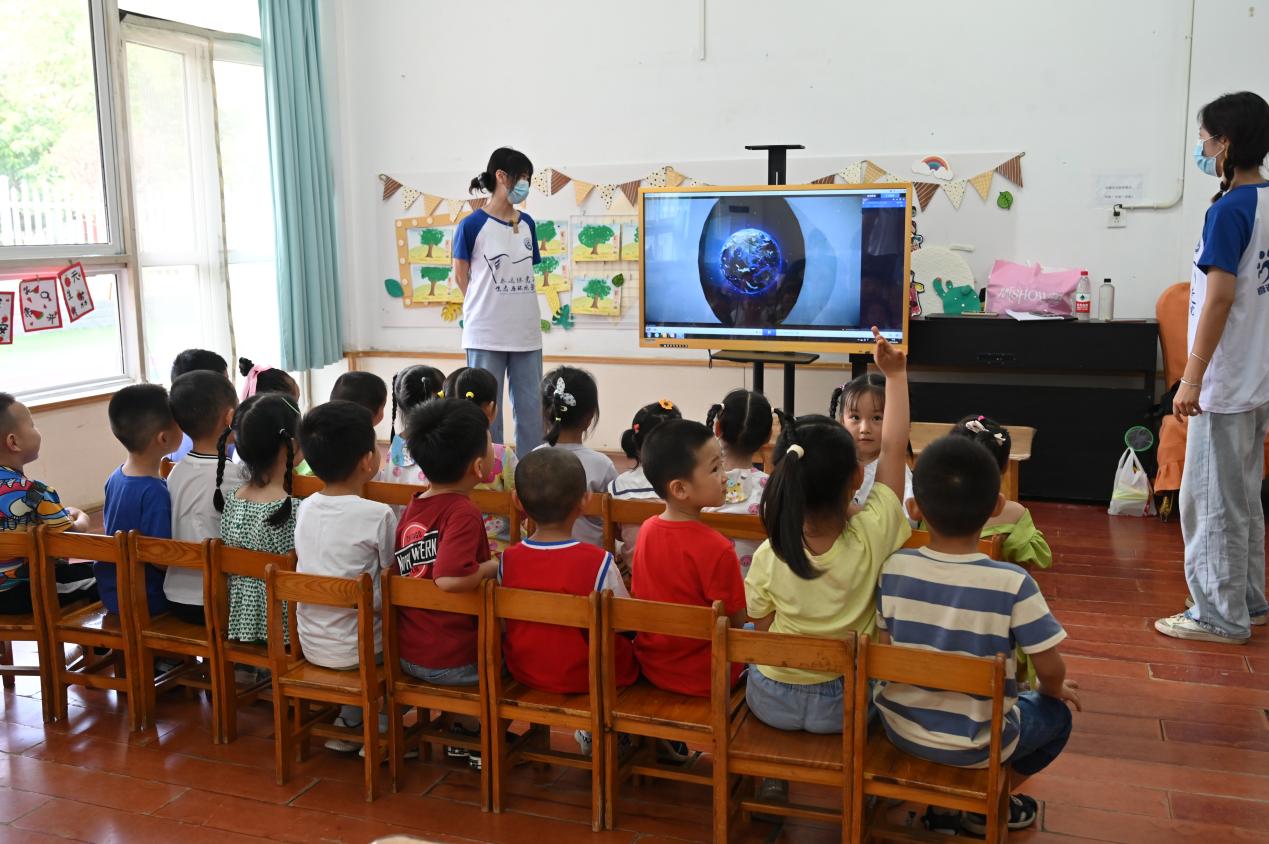 环保课以“爱护水源,我们有责”为主题,从“水的前世今生”“动手做实验吧”“保护水资源点滴做起”这三个方面,给小朋友们讲解了水资源保护的相关知识。在讲课过程中,考虑到幼儿园小朋友的特点,加入了图片讲解、观看视频以及提问互动环节,小朋友们都积极举手回答问题,现场气氛热烈。