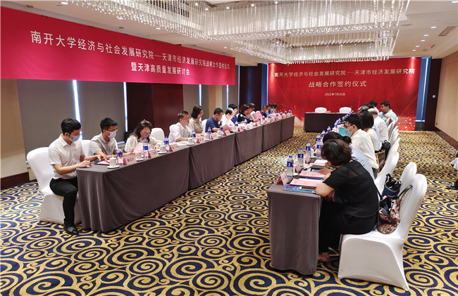 (通讯员 刘萌)7月25日,南开大学经济与社会发展研究院与天津市经济发展研究院战略合作签约仪式暨天津高质量发展研讨会在南开大学举行,校党委副书记牛文利、天津市发展和改革委员会一级巡视员刘东水参加会议并致辞。