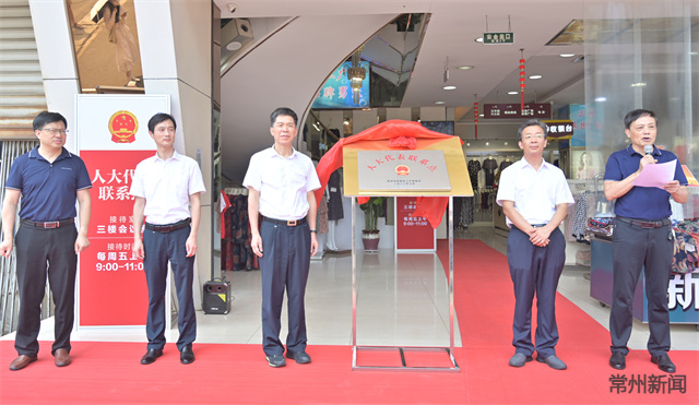 7月26日上午,在武进区,南田早学研究园和常州新华联服装商场的两个“人大代表联系点”分别揭牌,标志着武进区代表联系选民的“家、站、点”快速通道全面畅通。