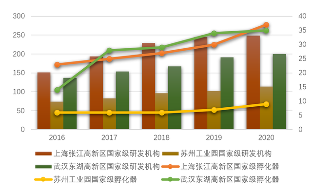 报告对多家重点高新区如上海张江、武汉东湖、苏州工业园等的发展进行了研判。尽管受疫情影响,东湖高新区创新创业平台建设稳步推进,创新型企业加速培育,净增高新技术企业、科技型中小企业数量创新高,有望在后疫情时代继续释放创新创业的活力。此外,东湖高新区创新人才集聚势头迅猛,上市企业研发人员占从业人员比重、硕士及以上从业人员比重快速上涨,从业人员的学历结构、职业结构不断优化升级,未来将催生出强大的创新发展动力。