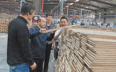 在广西贵港市江南产业园,“科创中国”林草及绿色家居产业科技服务团专家走进生产厂房,为木材产业发展建言。 图片由中国科协提供