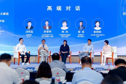 北京航空航天大学软件学院院长胡春明,中国钢研科技集团有限公司副总工程师韩伟,北京影谱科技股份有限公司联合创始人樊硕,北京银行科创金融中心主任崔晓辉,盛景网联合伙人汤明磊在高端对话环节聚焦传统产业数字化转型、政府数字服务能力提升、科技金融服务创新、产学研跨界协同创新等进行了深入讨论与交流。