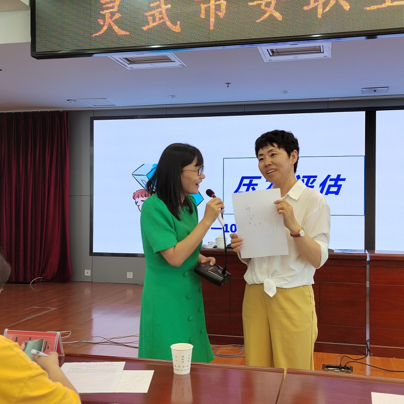 在讲座中,王志敏老师带领灵武市政府的女职工们进行了压力评估,让大家了解并认识了自己的压力;王志敏老师还带领着大家通过活动身体的方式放松身心,缓解心理压力,并教给大家一些在生活中自我测试并且缓解压力的方式和技巧,教会大家如何在平时及时察觉并舒缓压力,放松身心。
