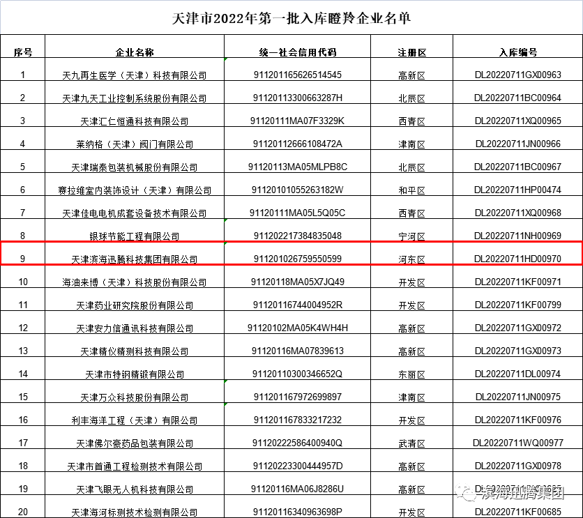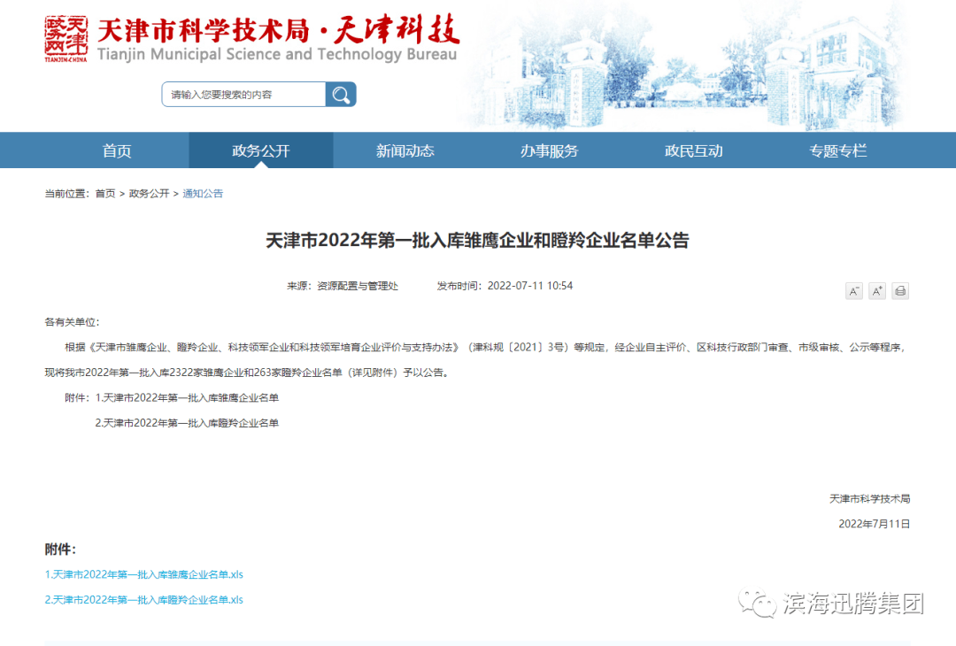 滨海迅腾科技集团成为2022年度天津市第一批“瞪羚企业”