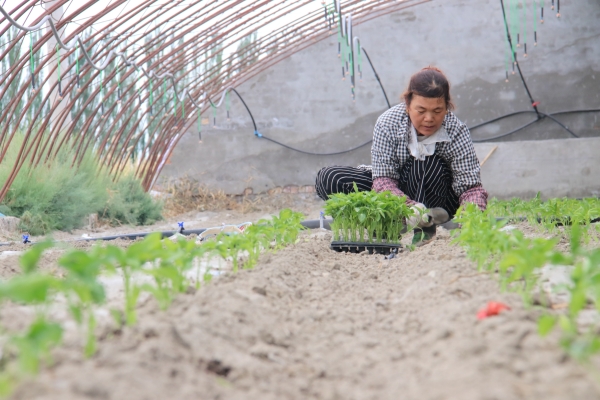 “大家注意栽苗的间距不要小于一个脚长的距离,不要栽得太深,破坏了滴灌带管......”7月26日,在博湖县塔温觉肯乡哈尔恩根村的大棚里,农业技术推广人员赵小平一边说一边拿着辣椒苗、小锄头,给来栽苗的农牧民群众现场示范栽种反季节辣椒苗需要注意的事项。