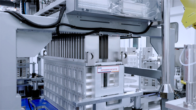 蜂巢能源首席信息官李翌辉博士介绍,叠片速度一直是行业痛点,蜂巢能源研发完成的下一代超高速刀片式电芯极组成型设备,叠片效率可达0.125秒/片,居全球领先水平。同时,在行业内率先导入使用了磁悬浮物流线,传输效率是皮带物流线的10倍。