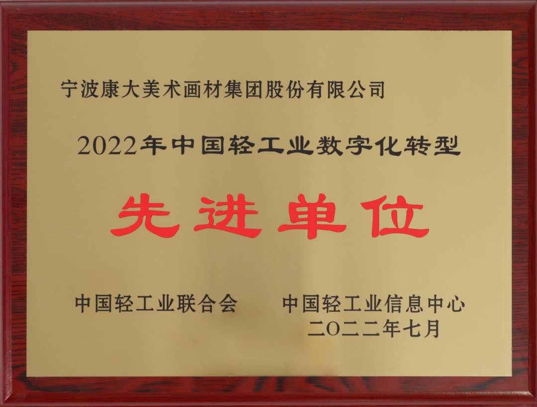 大会还表彰了中国轻工业数字化转型先进单位和领军人物。协会理事长宁波康大美术画材集团股份有限公司荣获“2022年中国轻工业数字化转型先进单位”、协会名誉理事长邱智铭荣获“2022年中国轻工业数字化转型领军人物”。