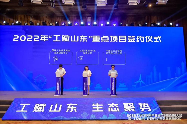 在本次大会上,工赋(青岛)科技有限公司、国家工业信息安全发展研究中心、中国工业互联网研究院山东分院、海尔卡奥斯等多家企业机构、科研院所就2022年“工赋山东”重点项目进行签约,加速产业生态协同,助力山东数字经济高质量发展。为推动“云行齐鲁 工赋山东”专项行动走深向实,青岛将在工业互联网领域持续领航,擎起数智标杆。