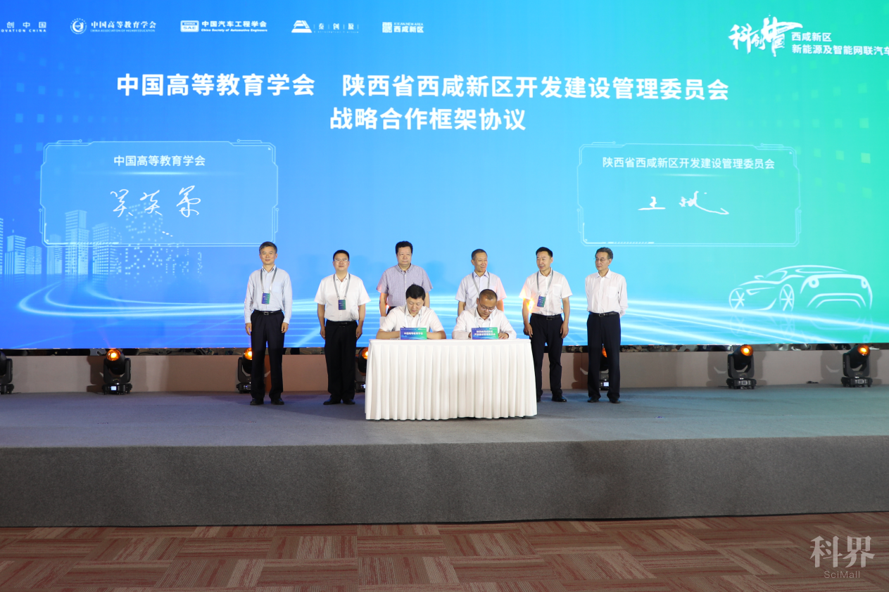 同时,为高效整合高校创新资源,服务区域高质量创新发展,中国高等教育学会、中国汽车工程学会分别与陕西省西咸新区现场签订战略合作,携手在产学研合作、科技成果转化、多层次人才培育等方面开展深入合作,推动形成科技创新人才及资源共享互动的良好局面。
