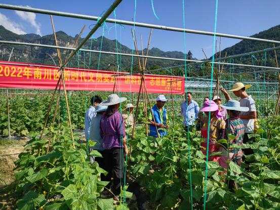 8月4日,南川区科协在大有镇水源村蔬菜基地开展新时代文明实践“讲科技”志愿服务活动。