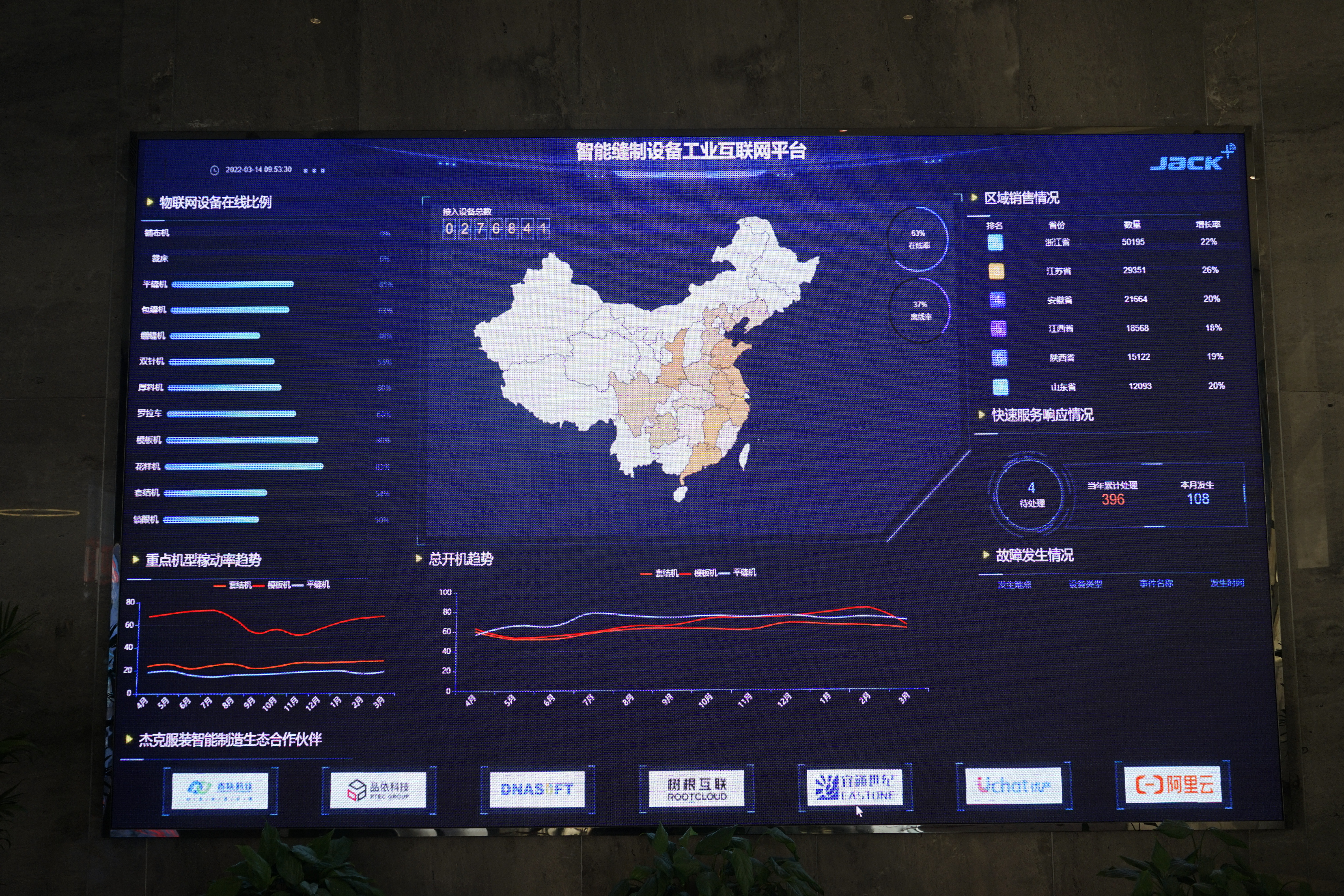 2019年,杰克与三一重工等企业合作,试水行业级工业物联网平台,同年7月,一系列物联网+技术的智能缝制设备投入市场,灵活提供网络设备、存储数据的服务器及生态应用的解决方案;