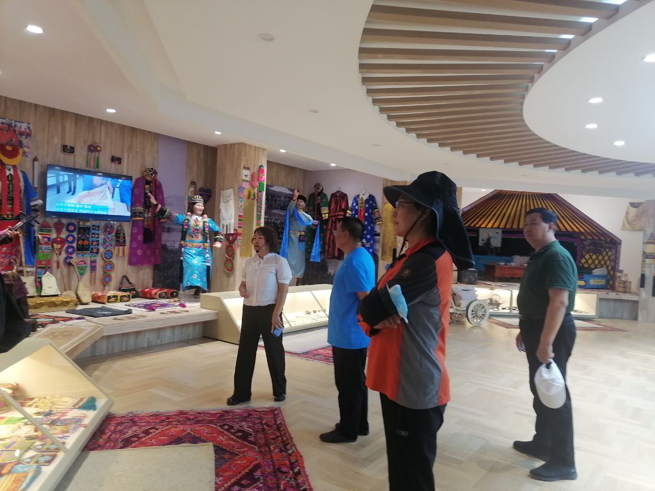 在博湖县非遗传承中心,调研组一行深入了解了东归文化及和硕特部落历史文化,认真听取了蒙古族刺绣、服饰、祝赞词、萨吾尔登、蒙古族托布秀尔制作技艺、蒙古包制作工艺、蒙古族短调民歌、蒙医药浴、蒙医金烙术、蒙医裹羊皮疗法等非遗项目介绍。