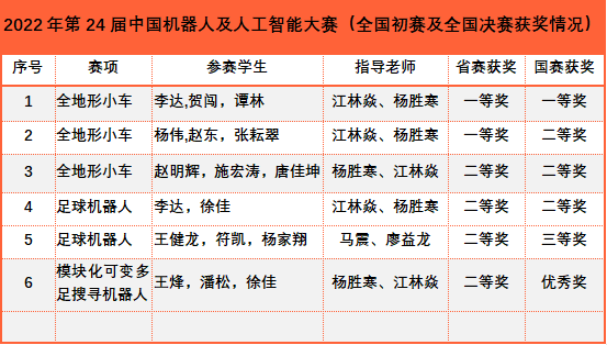 近日,在第24届中国机器人及人工智能大赛全国总决赛中,贵阳信息科技学院斩获全国一等奖1项、全国二等奖3项、全国三等奖1项、全国优秀奖1项。