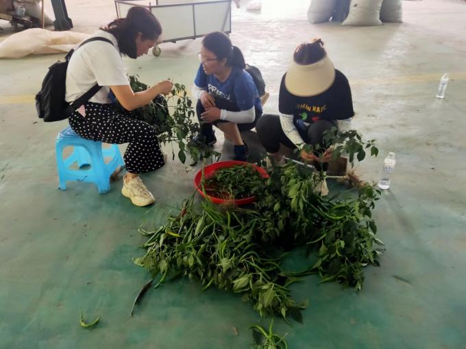 在馋解香公司基地上,专家组采取随五点取样法,每点取22平米进行株数测算,每点随机抽取2株,进行统计。通过统计株数,辣椒单株果数、花数、单果重等进行测算,测算出辣椒每亩理论产量。经测算得出:朝天椒新品种星悦平均单产为2025Kg,艳椒平均亩产为2321Kg,贵州二荆条平均亩产为2258Kg。据了解馋解香公司在穿洞村共发展辣椒500余亩,其中二荆条20余亩,欣悦135亩,艳椒345亩,2022年可生产辣椒1000吨以上,按今年平均价格4元/Kg,产值可达到400万元以上。