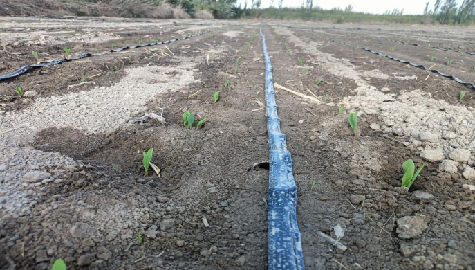 “干播湿出”技术在复播玉米上应用,一是节约用水,亩均节水100方左右;二是一播全苗,滴水均匀,出苗整齐;三是实现适期播种,不需要适墒播种,减少耕地等候时间。