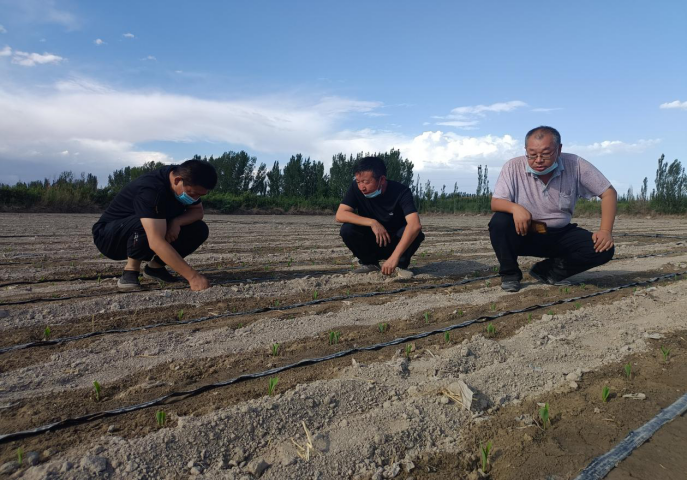 2021年10月,县农技推广中心在群巴克镇卡赞布拉克村开展6个品种对比试验,今年6月19日冬小麦收获后,进行整地,22日-23日,供试6个复播玉米品种采用“干播湿出”技术进行播种,滴水后第三天开始出苗。6月27日,在农业技术推广中心副主任、高级农艺师谭永军同志的指导下,技术人员对出苗情况调查,两个品种出苗率达95%以上,一个品种出苗率90%以上。