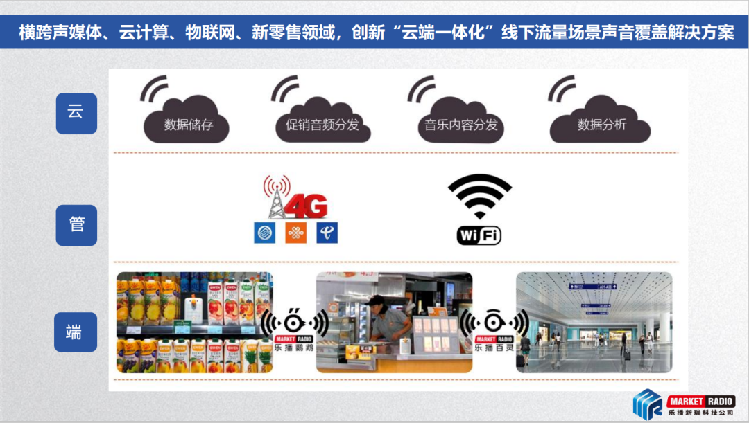 ● 乐播新瑞(北京)科技有限公司是一家5G新基建TOB音频技术科技公司,中国首家新基建公域音频云平台服务商,为商超餐饮等泛商业零售店铺业态和地铁公交、社区景点等公域流量场所的声音覆盖和应用提供独家SAAS智能音频数字化解决方案。项目团队2021年被评定为“北京市智慧广电重点实验室”。公域长音频(乐播百灵)重点解决连锁商家氛围标准化打造、顾客体验升级、千店万人扁平管理培训等痛点,并兼顾日常防灾安全等应急应用。公域短音频(乐播鹦鹉)将为零售商与商品主全面解决货架商品广告“直面”消费者的“一对一”精确到达,商品信息“万店营销标准化无差别传达”等痛点。